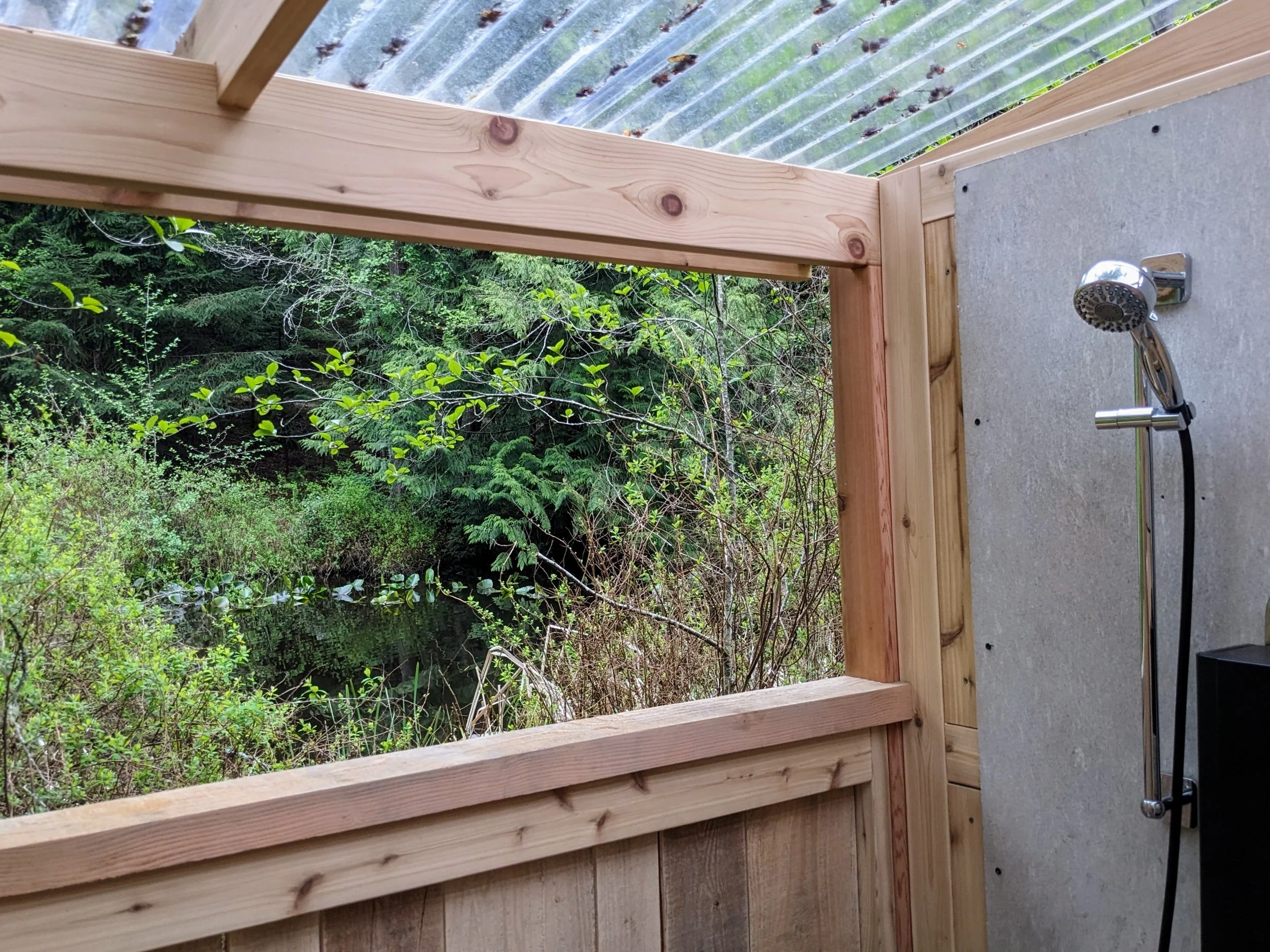 The outdoor hot and cold nature shower offers a refreshing way to rinse and reset between sauna rounds. The chemical-free water is carefully filtered and mineral-infused, often experienced as soft and clean on the skin. Hot and cold temperatures are available, inviting intuitive movement between warmth and coolness in the open air.