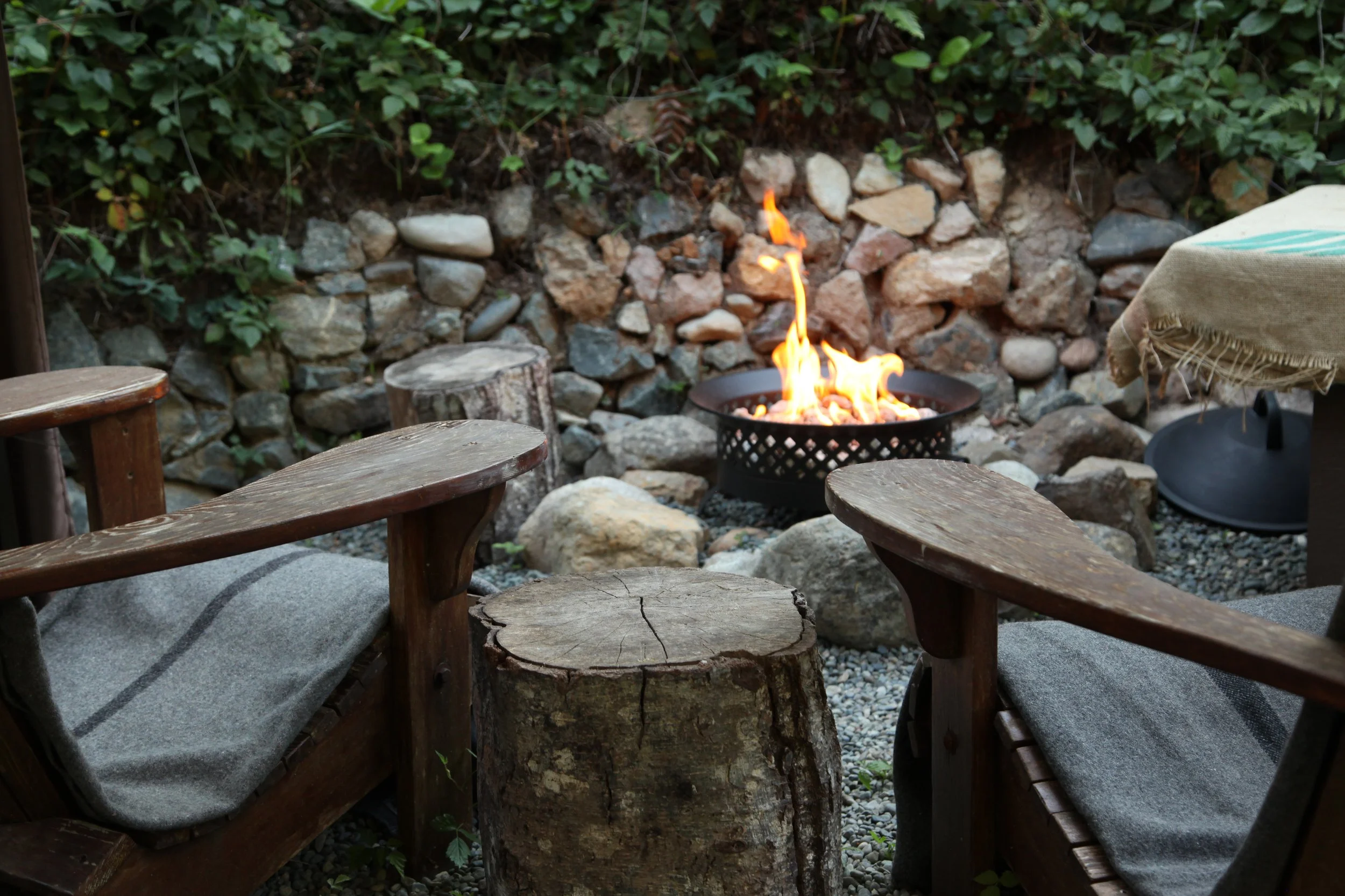 Between rounds, guests can rest in the outdoor lounge space by the fire, with seating, warmth, and herbal tea provided. This space is designed for quiet rest, gentle conversation, or stillness — allowing time to integrate the experience while remaining immersed in nature.
